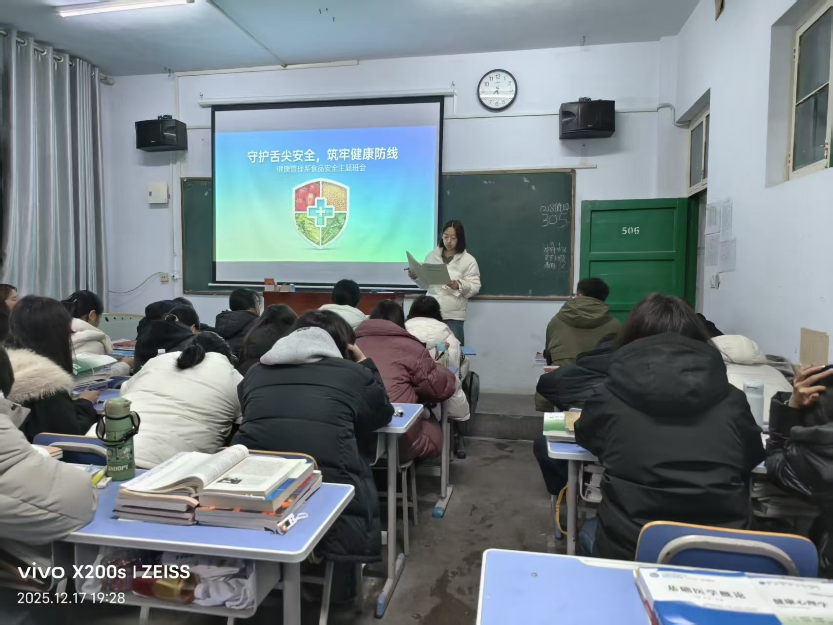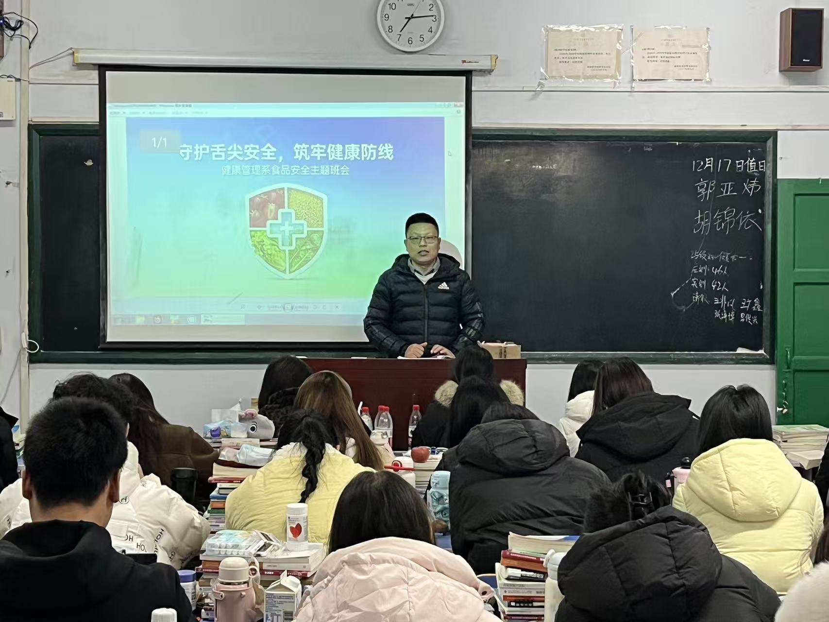 为守护校园食品安全与学生健康,引导大家远离问题外卖、养成良好饮食习惯,健康管理系于12月17日在各班召开食品安全主题教育班会。