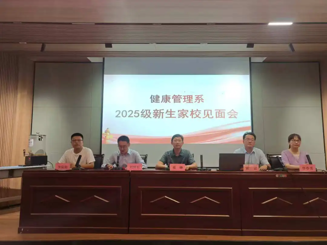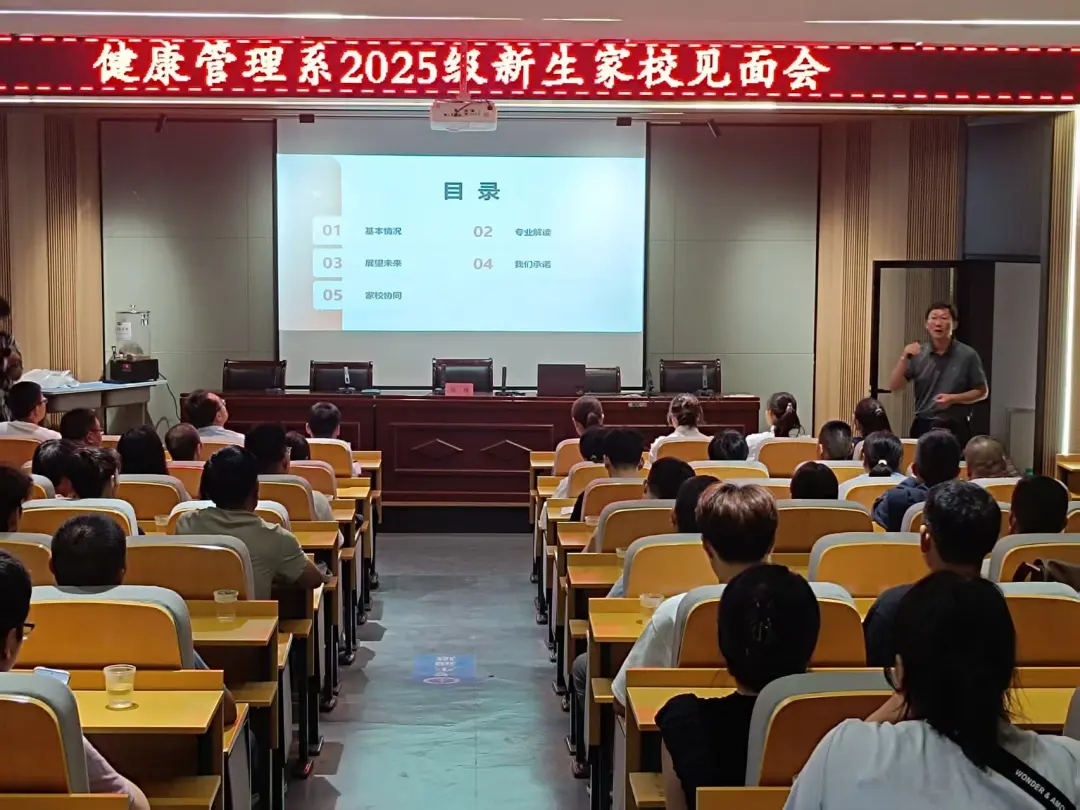 9月5日晚上,健康管理系在孔明校区实验楼101教室开展“2025级新生家校见面会”活动。系全体领导班子成员、辅导员代表及部分学生家长共计100余人参与,会议由健康管理系党总支书记刘怀东主持。