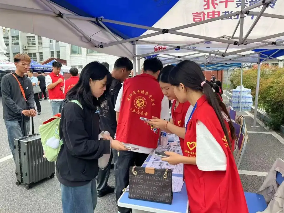 迎新当日,校园里人头攒动,气氛热烈。我系报到点前,学生会成员和志愿者身着统一服装,精神饱满,各司其职。从校门接待到引导至报到点,从核对信息到办理入学手续,志愿者们提供“一站式”服务,确保了整个报到流程顺畅高效。我系还设立了中医养生茶歇,为远道而来的家长提供养生茶,缓解了他们旅途的疲惫,传递出我系的人文关怀。