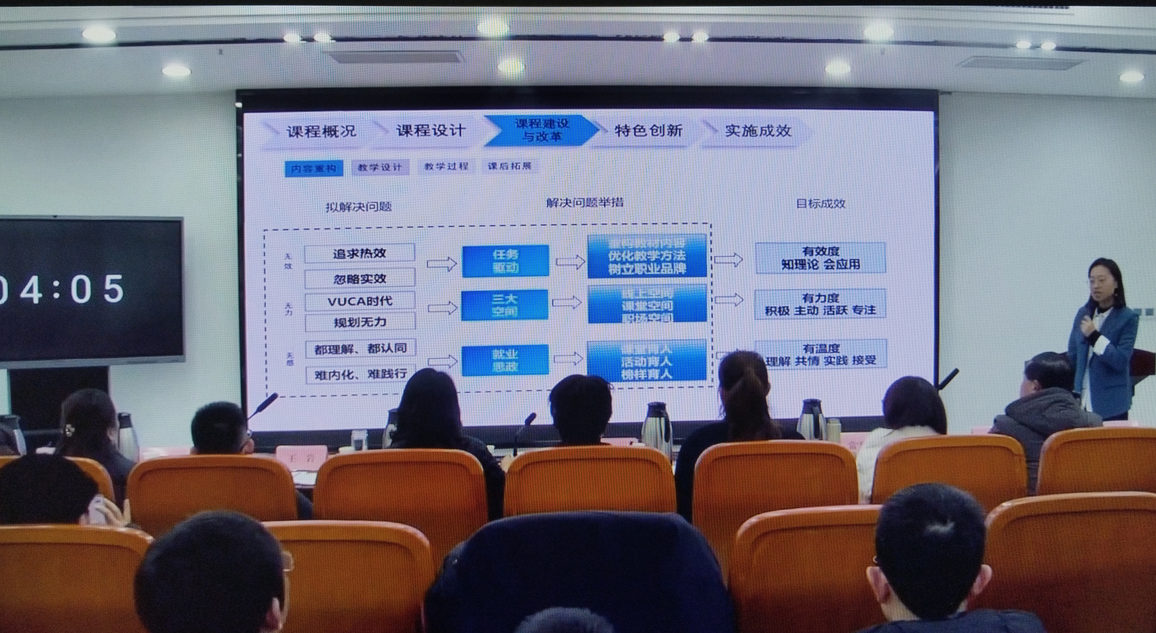 本次竞赛中,团队以大一新生必修的《职业生涯与创新教育》课程为核心,系统汇报了课程从概况到成效的全维度建设。该课程30学时、2.0学分,依托《医学类院校就业创业指导教程》,组建了由1名专职教师、10名兼职教师及8名非遗传承人构成的19人“双师型”教学团队,开篇即由系部书记、主任亲授职业生涯“第一课”,筑牢专业思想根基。针对健康管理、中医养生保健专业新生“第一志愿率低、专业认同感弱、理论基础薄弱但动手能力强”的学情特点,团队创新构建“课堂-线上-职场”三大空间,通过订单班合作、企业见习实习等方式,打破教学时空局限,让学生在真实职场场景中感受专业价值。