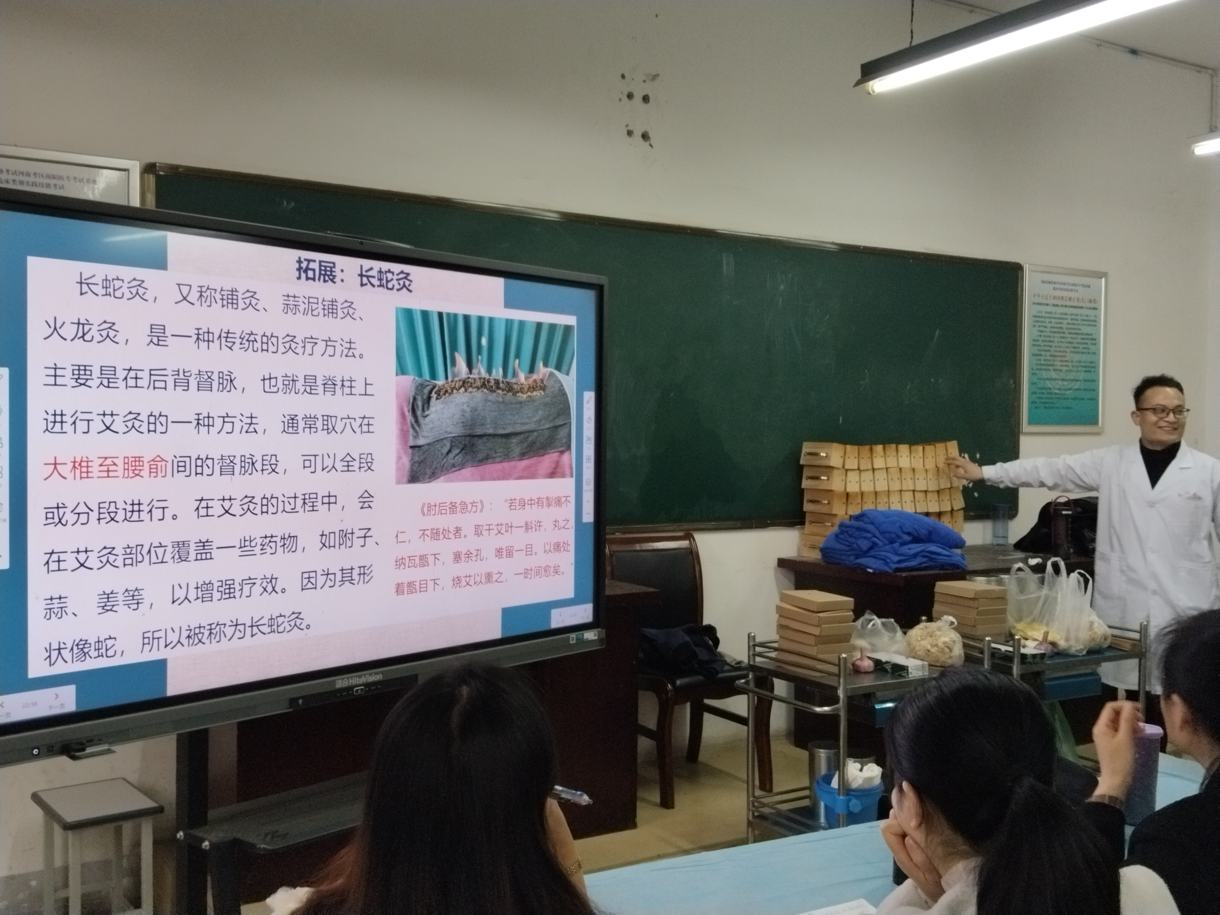 在临床应用与操作技法环节,游老师梳理了艾灸在疼痛类、消化、神经、妇科男科、呼吸等八大类疾病及亚健康调理中的适用范围,重点讲解艾炷灸、艾条灸、温针灸等主流灸法。针对直接灸与间接灸的分类,细致演示化脓灸、非化脓灸及隔姜、隔蒜、隔盐、隔附子饼灸的操作要点,特别介绍火龙灸(长蛇灸)的督脉施灸流程、适应症及实操技巧,对比不同灸法的优劣与适用场景,明确现代养生更推荐温和的无疤痕灸法。