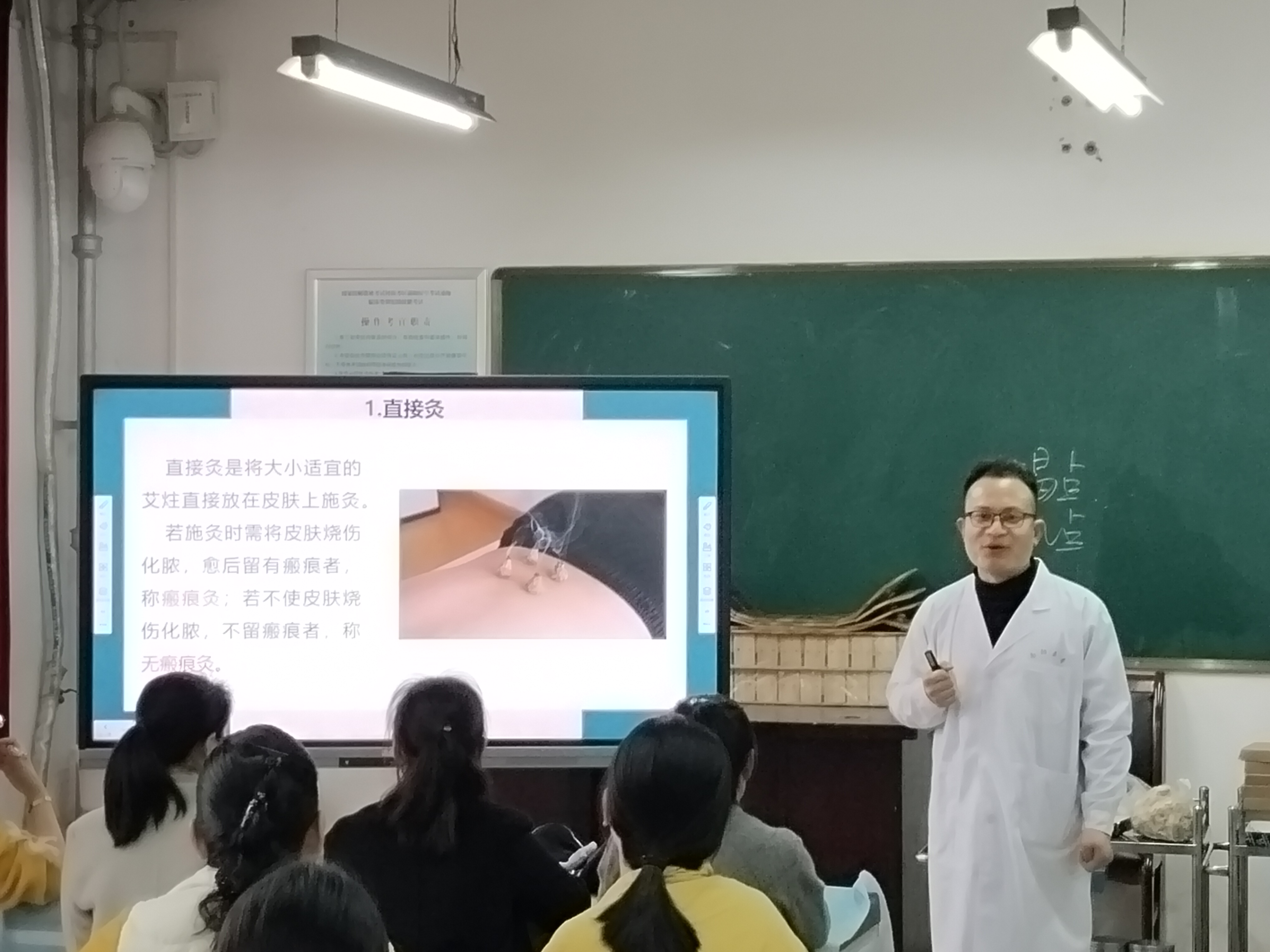 本期首次培训以灸法为核心授课内容,由健康管理系游晓阳老师主讲,围绕艾灸的理论基础、操作技法及临床应用展开系统教学。课程内容兼具理论性与实操性,紧密结合临床实际。游老师从灸法的概念出发,详细解读了艾草成为核心灸材的六大优势,阐释其易得性、易燃性、高温性、燃烧稳定性、药用性与易成型性的独特价值,并引用《孟子》“七年之病求三年之艾”的经典论述,强调陈年艾草在顽疾治疗中的重要地位。同时,系统讲解灸法疏风解表、温经散寒、活血逐瘀、回阳固脱、防病保健等五大核心作用,让学员明晰艾灸的中医理论支撑。