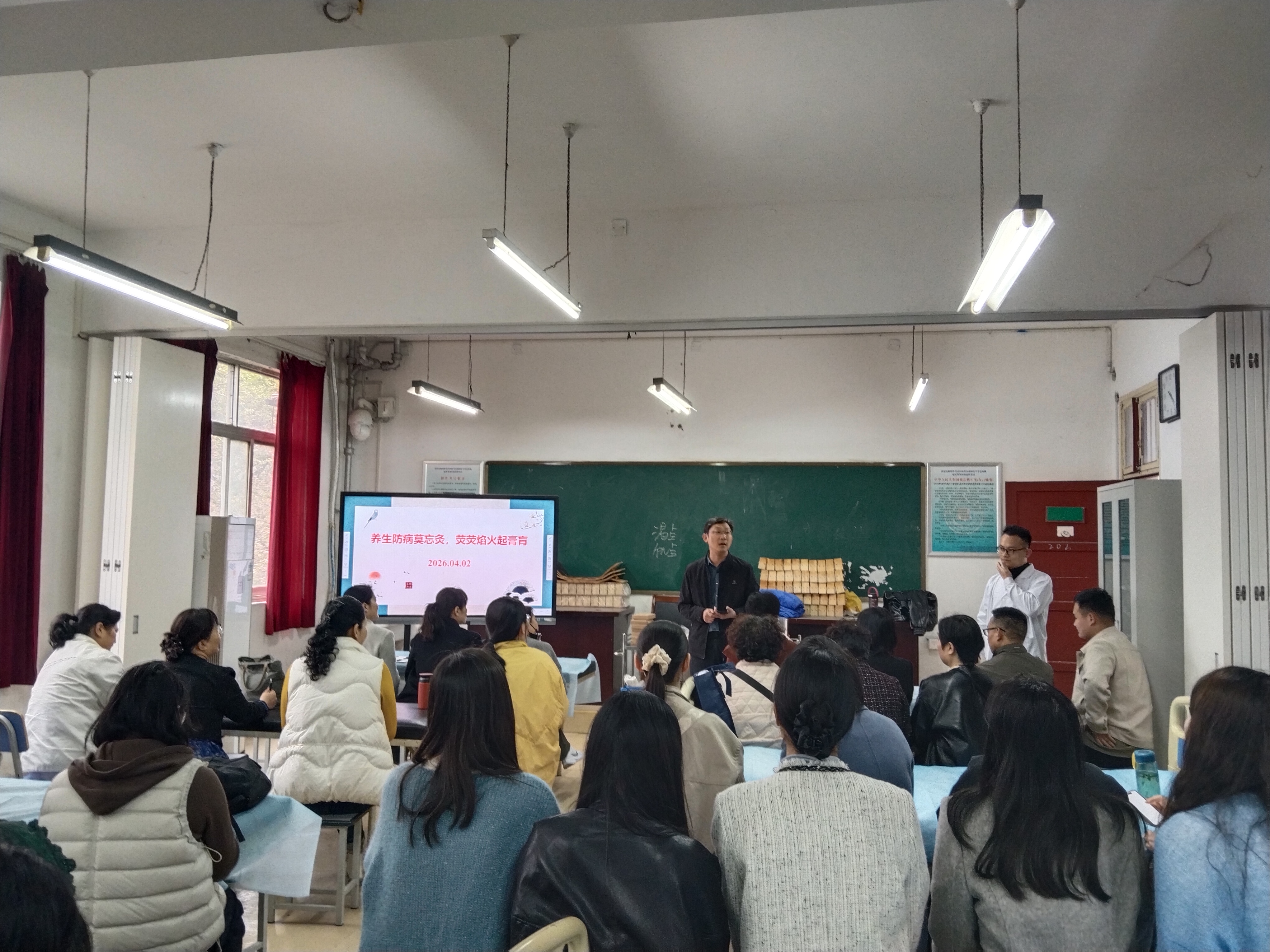 为传承中医国粹,推广实用中医适宜技术,提升医疗从业者及养生爱好者的专业技能,4月2日,由南阳医学高等专科学校教务处、继续教育学院主办,健康管理系承办的中医适宜技术第三期培训在孔明校区实验楼202实训室正式开班,众多学员齐聚课堂。系主任张峰首先对各位老师的积极参与表示热烈欢迎,随后明确宣读了本次培训的课程请假制度与课堂听课纪律,要求大家严守学习规范,同时勉励老师们勤于动手、勇于实践,利用培训契机深入探索中医适宜技术的神奇奥秘。